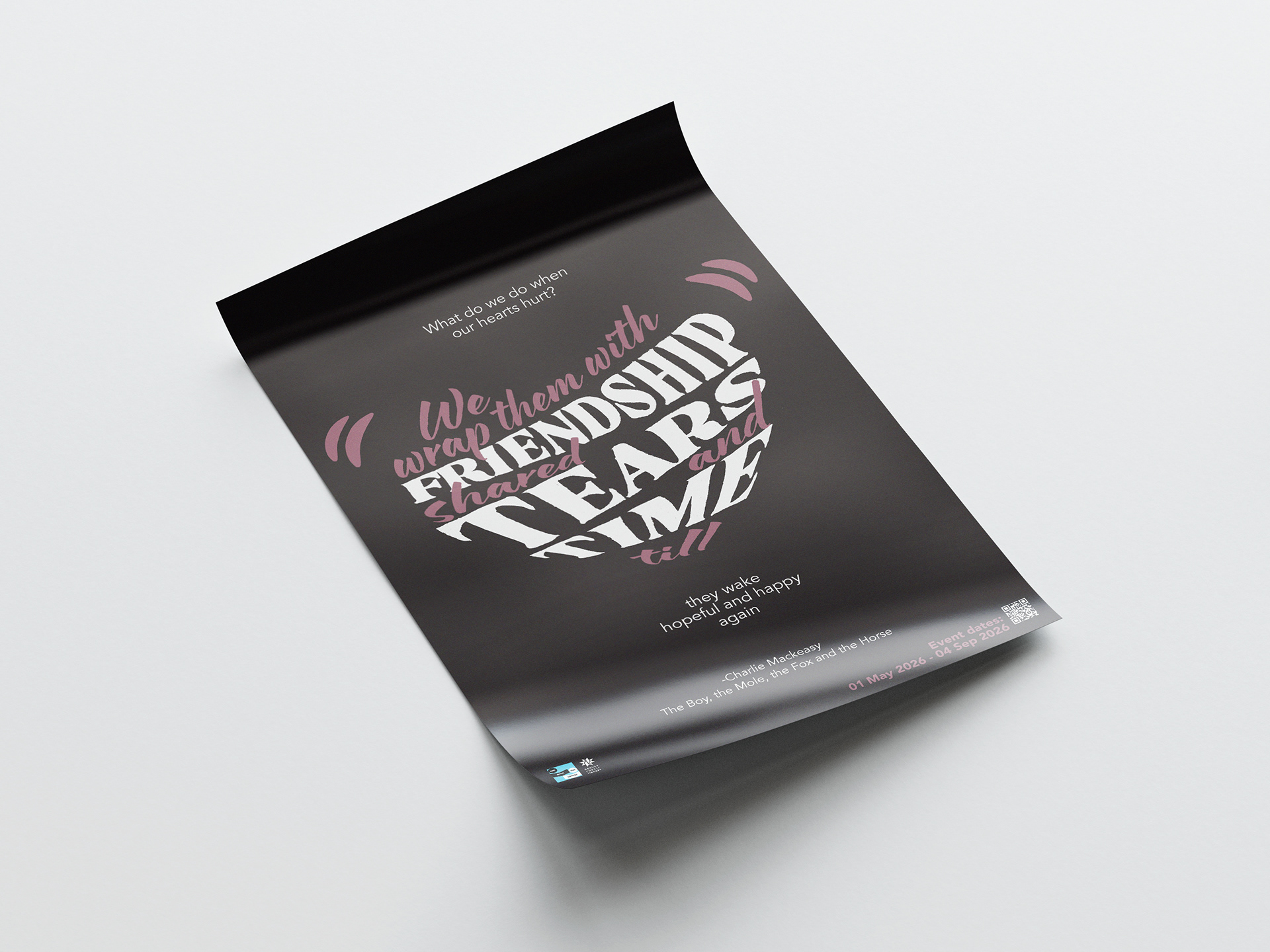 For this project we are partnering with Denver Public Libraries to create a poster series of their One Book One Denver event. The purpose of these posters is to promote books that are hidden gems. The book I chose for my poster series is The Boy, the Mole, the Fox, and the Horse. The challenge of this project is making type expressive as possible and the main focal point of the posters with little to no illustrations. What I have been gaining from this project is figuring out how to make my type as expressing and dynamic as possible without taking away meaning from the quotes that I'm using.